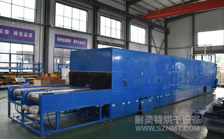 叉車輪子雙通道灌膠固化爐主要技術參數 1、內膽尺寸:左右雙通道,每條通道內寬700mm*內高500mm;加熱區長10000mm+保溫段700mm; 2、外形尺寸(約):總長12700mm*高1950mm*寬2100mm;輸送帶離地面高800mm±25mm; 3、總長12700mm*高1950mm*寬2100mm;輸送帶離地面高800mm±25mm; 4、溫度范圍:+55~+200℃; 5、三面循環運風,≥800立方/臺風機;